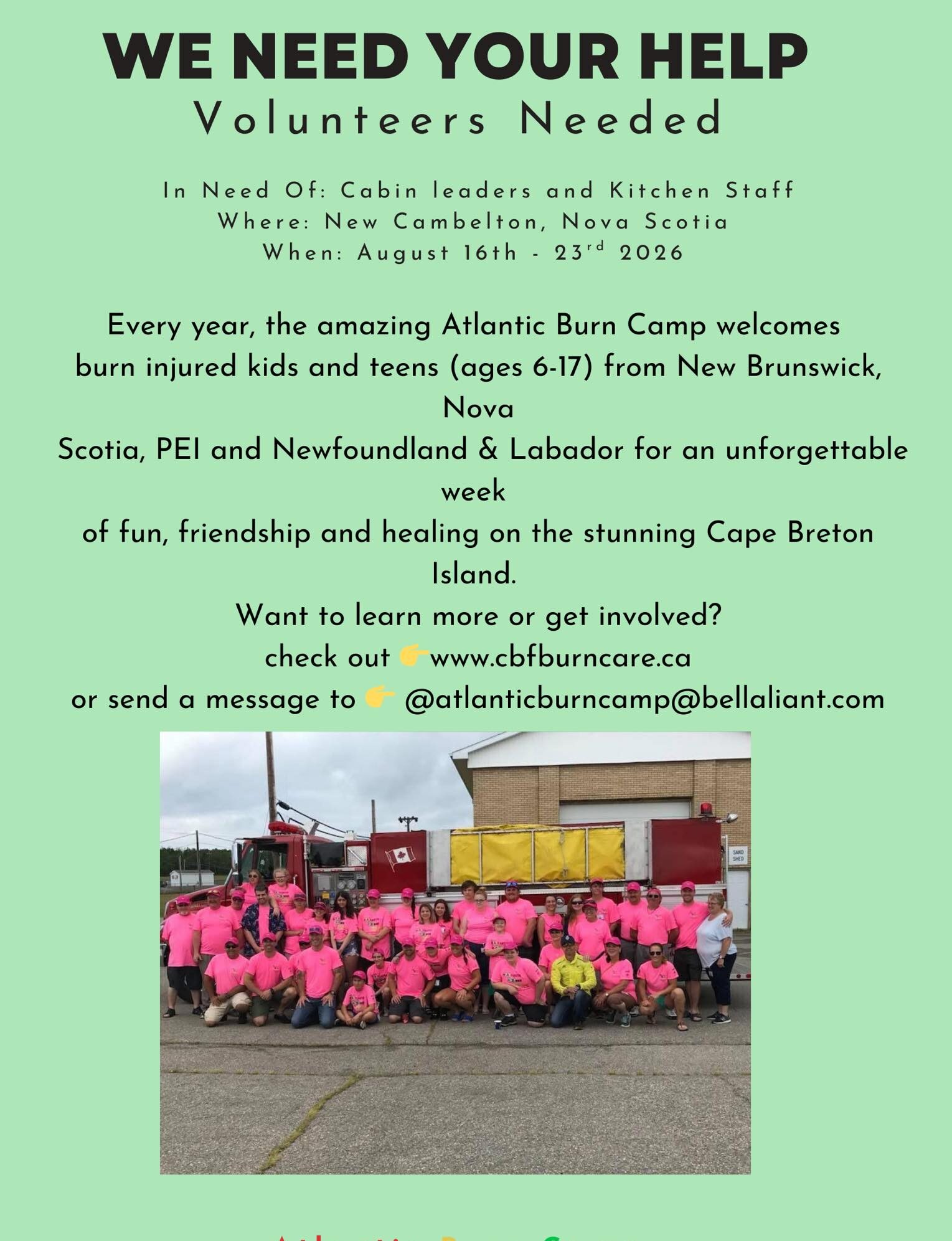 One person can make a huge difference to the Atlantic Burn Camp and Dan Chiasson of the Baddeck VFD is just that person. Back in 2014 Dan took it upon himself to spearhead a fundraising campaign; with the help of the participating Volunteer Fire Department have now raised $32,506.85 over the past eight years. This is a significant help to ABC, as all the money is committed to assuring that the young burn survivors are able to attend the week long camp in New Campbellton, Cape Breton at no cost to their families.
